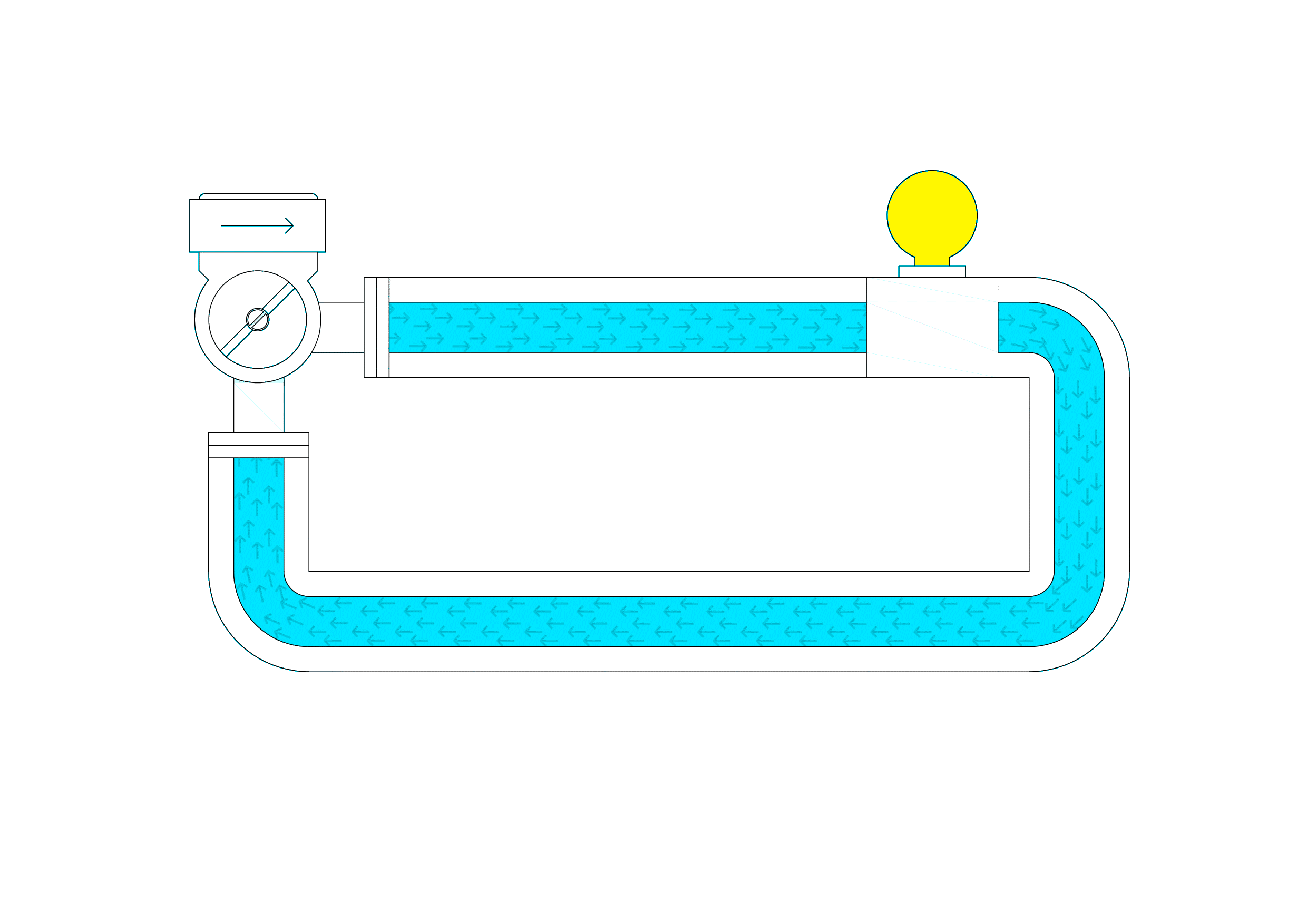 Here is a representation of how this circuit would look if we were using the water analogy.