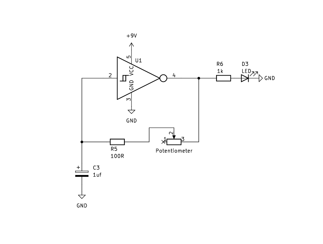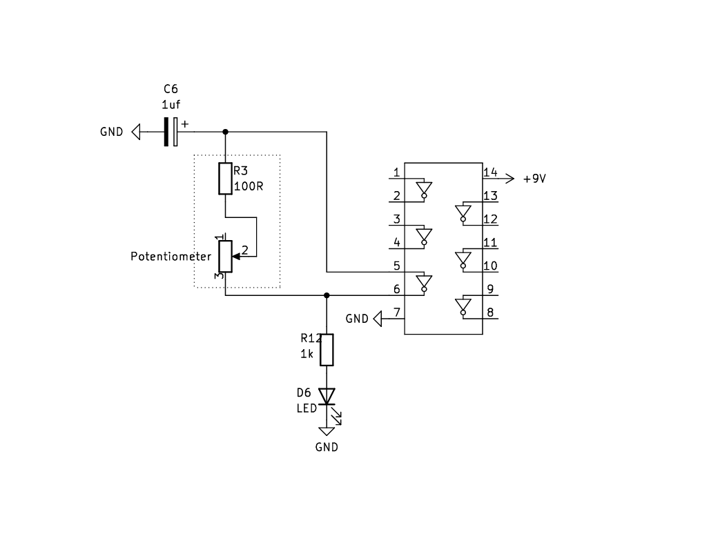 Variable resistors (or potentiometers) are generally what are used for the knobs on a synthesizer. So we need to swap the fixed 1k resistor for a potentiometer to allow us to control the resistance value, ad thus the frequency of the oscillator.