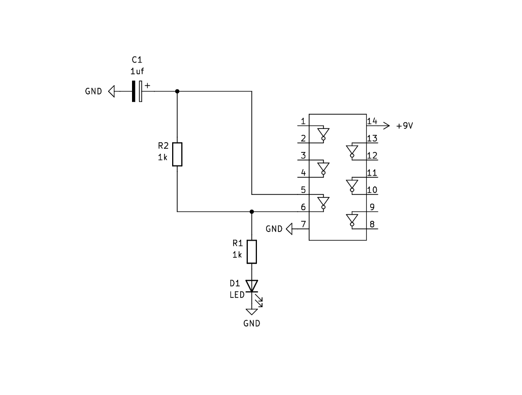 Here we are making a simple square wave oscillator with a fixed frequency. The frequency is defined by the value of the capacitor and the resistor.